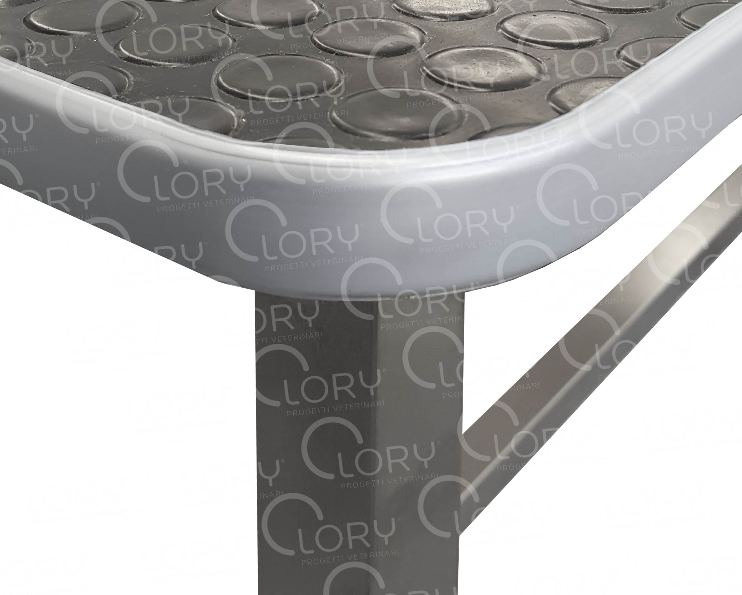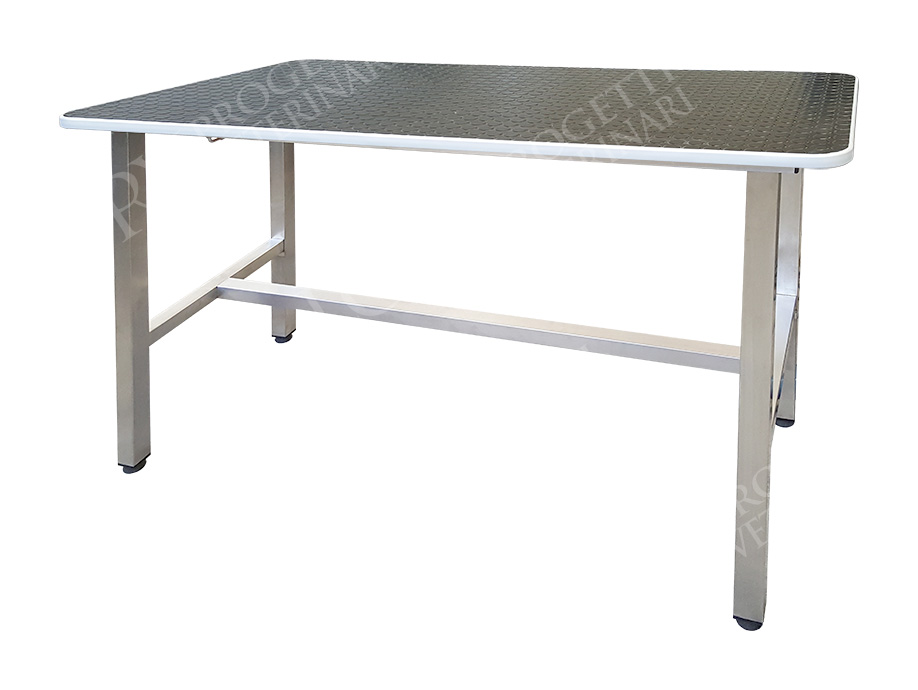 Aisi 304 stainless steel frame. Laminate top edged and covered with black non-slip rubber.