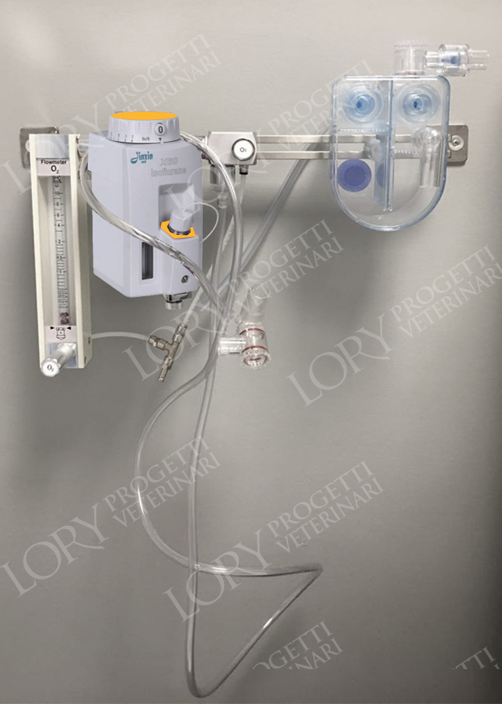 Consists of: 1-gas flow box, By Pass with bayonet connection, 2-liter flask, new vaporizer (revised upon request), gas evacuation tube and patient tube with flask, open and closed rotary circuit and selectated bar
