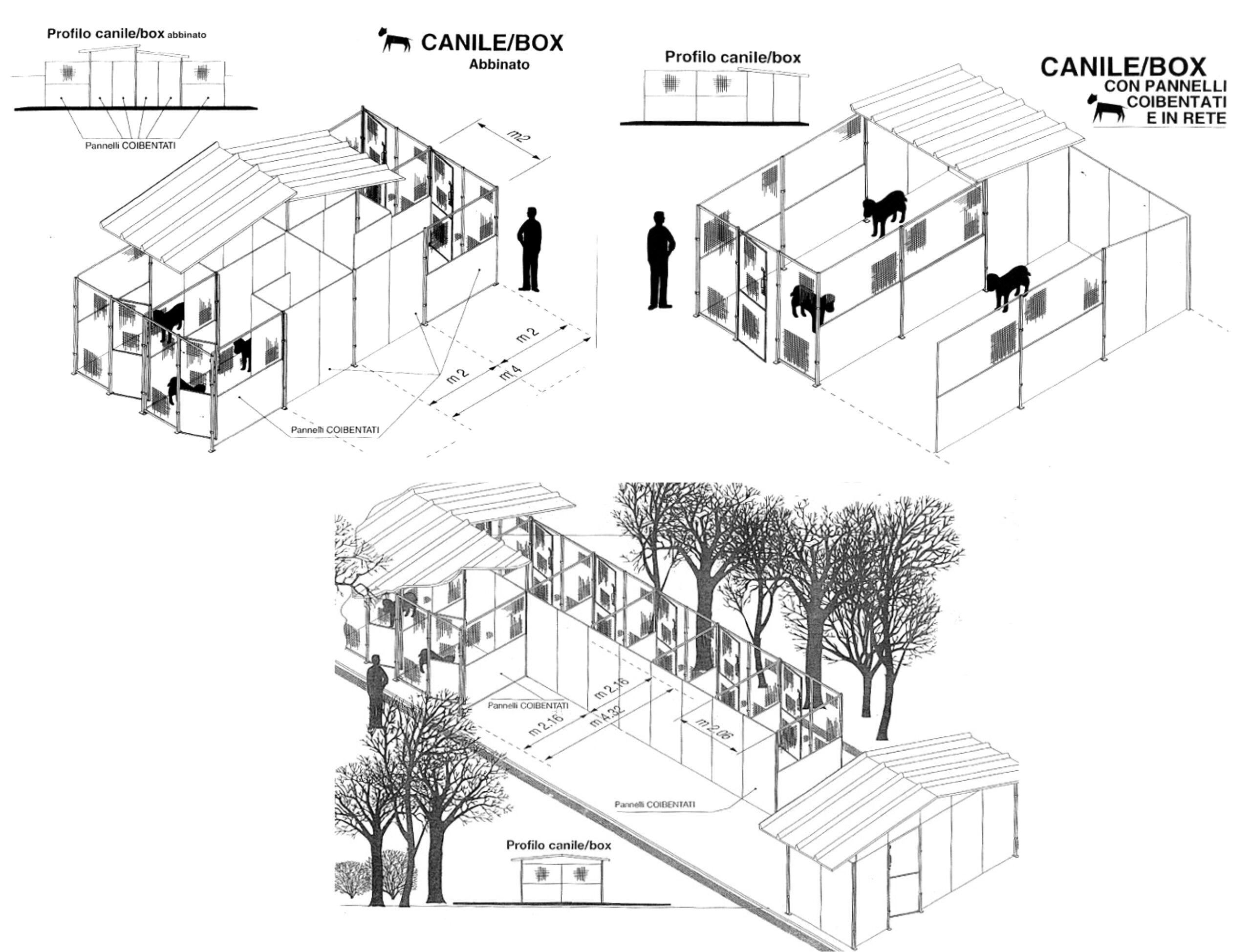BOX CANI INTERO, TUTTO COPERTO, PARETI COIBENTATE PER METÀ, RETE MAGLIA QUADRA ZINCATA 40X40,