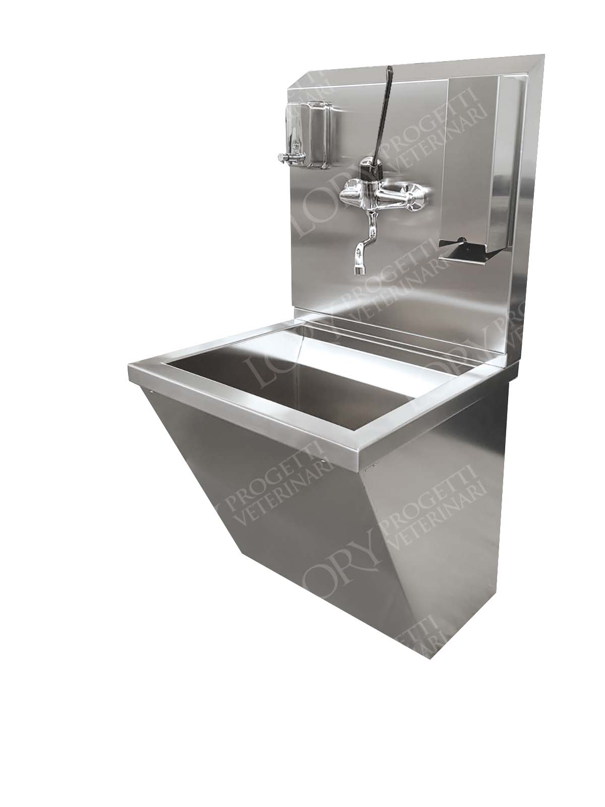 Lavello sospeso a un canale, realizzato in acciaio inox Aisi 304, erogazione con miscelatore a leva clinica flex.