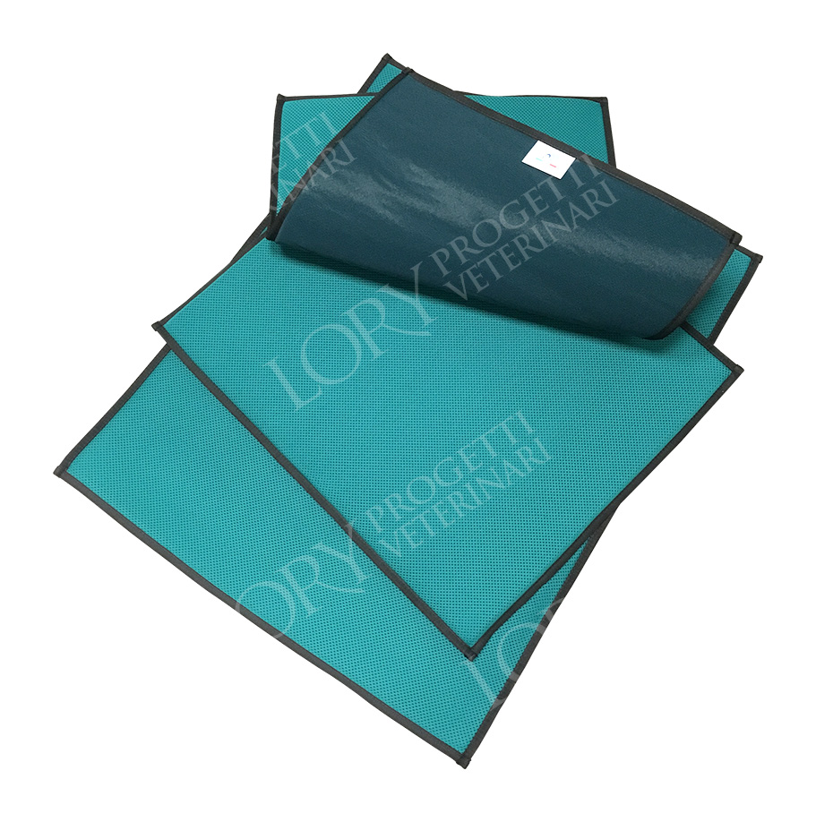 Realizzato in poliestere 100%, con bordatura perimetrale. Materiale leggero, traspirante, radiotrasparente, asettico e antidecubito. Permette di drenare i liquidi quali urina o siero proveniente da traumi operatori. Facilmente lavabile a bassa temperatura. Spessore 10 mm.
