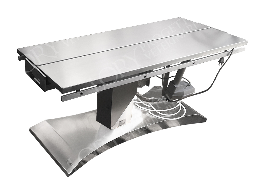 Tavolo operatorio completamente elettrico azionato con pulsantiera che permette il comando totale di tutti i meccanismi del tavolo. E’ in grado di effettuare tre movimenti completamenti elettrici: salita e discesa, trendelemburg e MOVIMENTO DEI PIANI A LIBRO. Piano in acciaio inox completo di vaschetta raccogli liquidi.