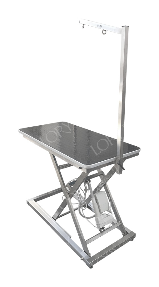 Movimento verticale azionato con pulsantiera a due comandi per modificarne l’altezza, in acciaio inox Aisi 304. Braccio in acciaio inox regolabile in altezza con apposita maniglia. Piano in multistrato rivestito in gomma con bordatura anti urto. Portata 100kg. Potenza 250W – Motore 24V